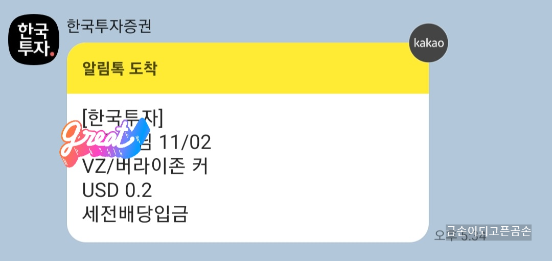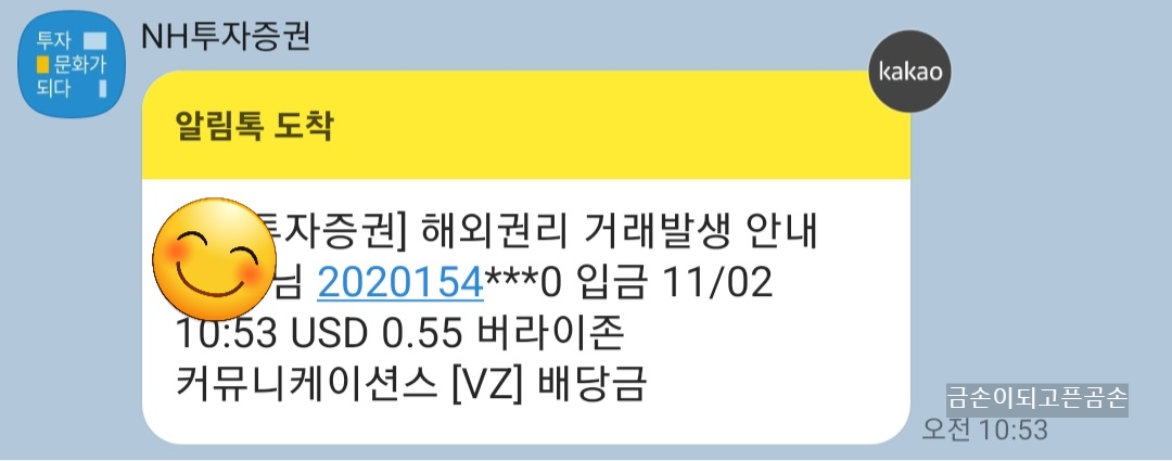 나무증권 VZ 버라이존 커뮤니케이션스 배당금을 0.55달러 받았습니다.