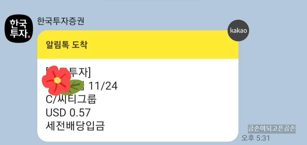 11월 C 씨티그룹 배당금을 0.57달러를 받았습니다.