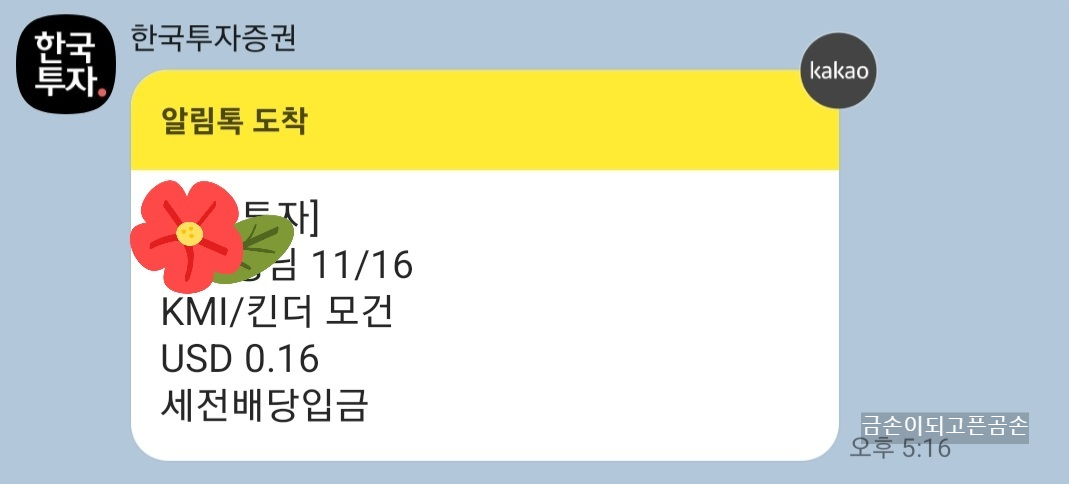 11월 KMI 킨더 모건 배당금으로 0.16달러를 받았습니다.