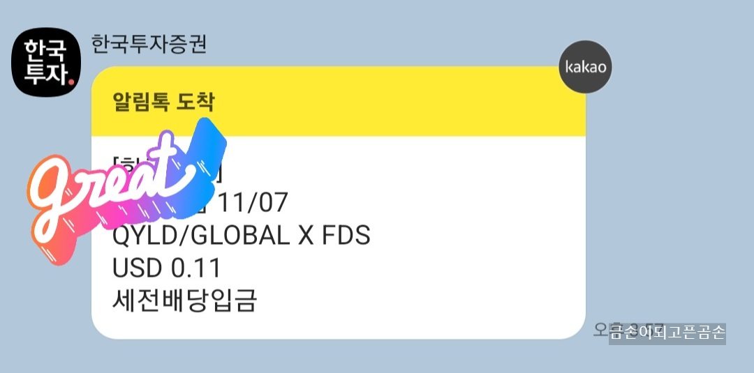 QYLD / GLOBAL X FDS 배당금으로 0.11달러가 입금되었습니다.