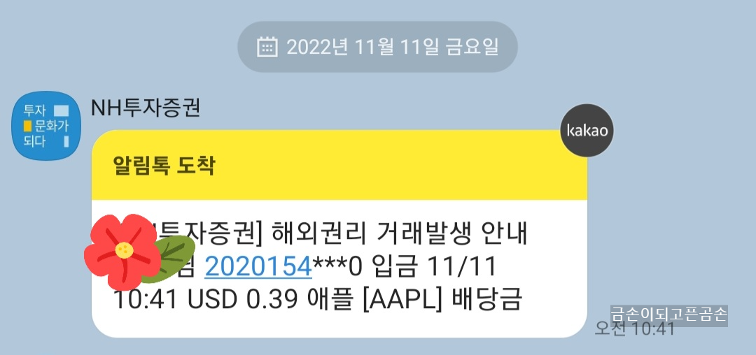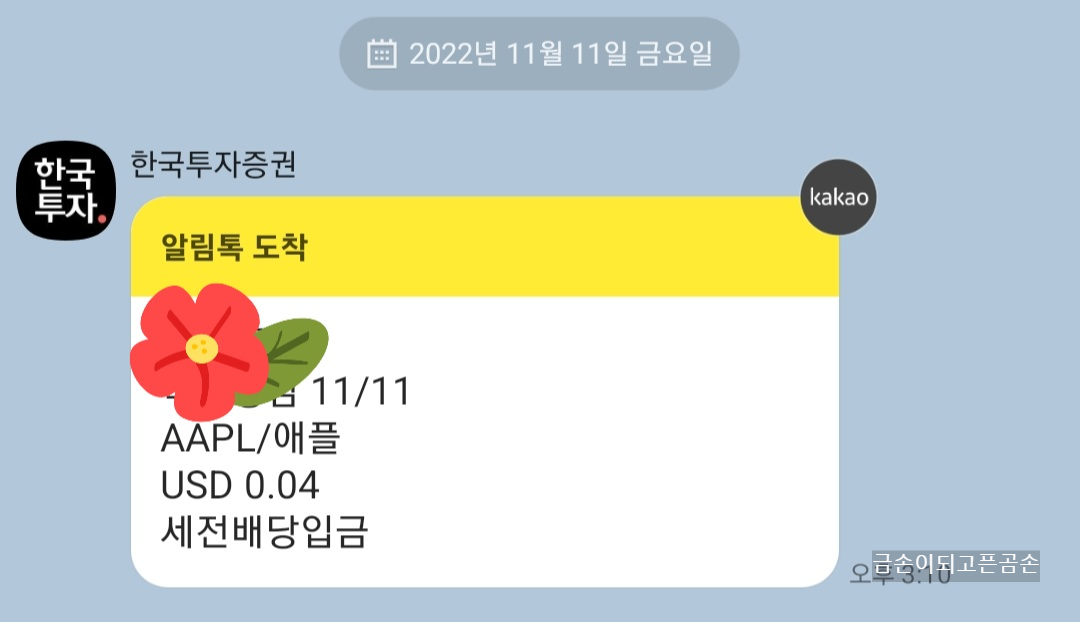 11월 AAPL 애플 배당금이 0.04달러 입금되었습니다.