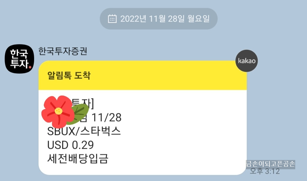 11월 미니스탁 스타벅스 배당금이 0.29달러가 나왔습니다.