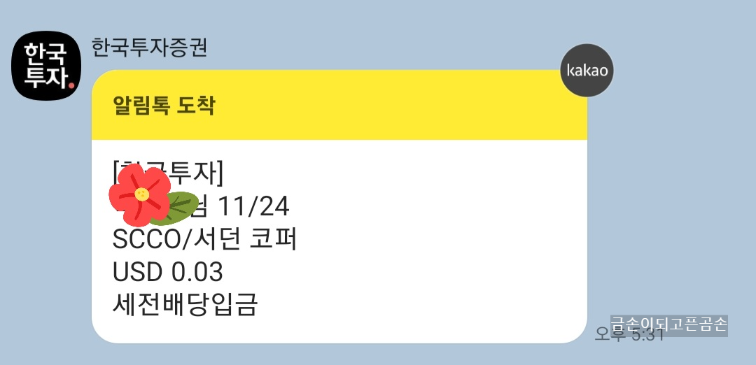 11월 SCCO 서던 코퍼 배당금을 0.03달러 받았습니다.