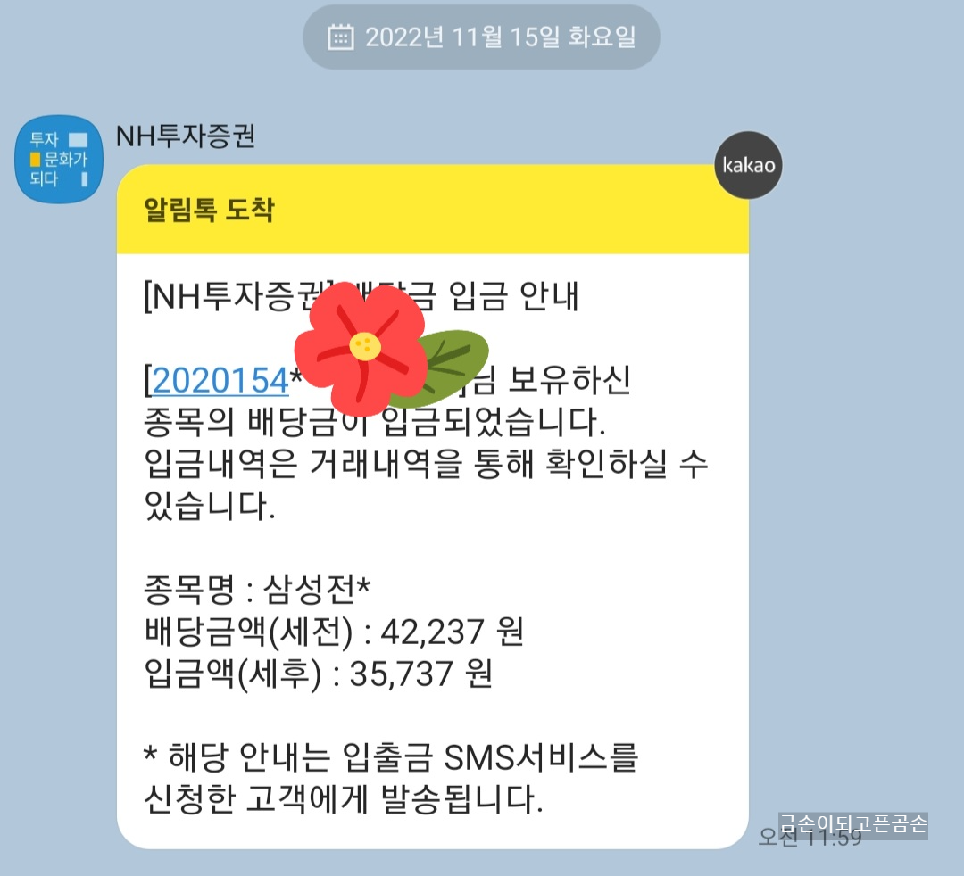 3분기 삼성전자 배당금으로 35,737원을 받았습니다.