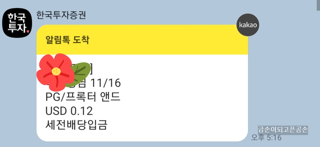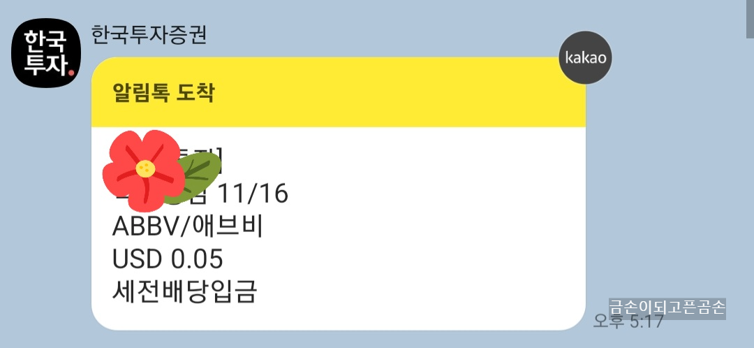 11월 ABBV 애브비 배당금을 0.05달러 받았습니다.
