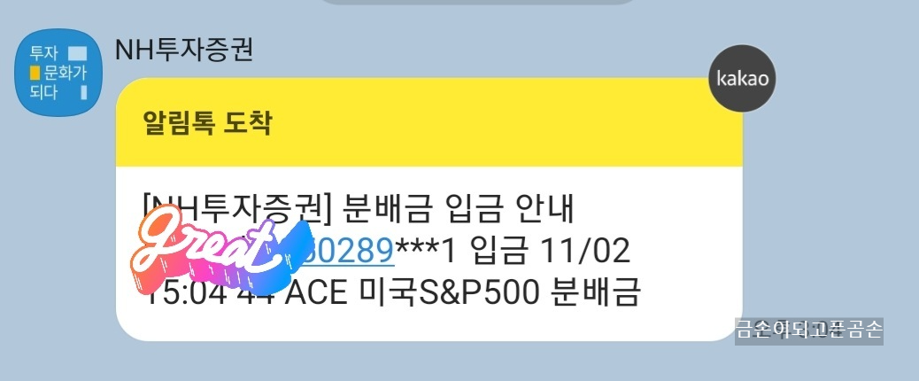ACE 미국S&P500 분배금으로 44원을 받았습니다. 0.03달러입니다.