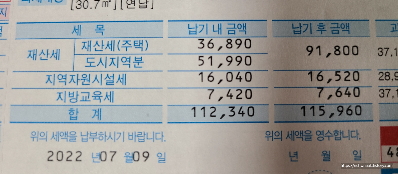 2022년 7월 재산세로 666,710원을 내었습니다. 작년에는 651,100원을 내었는데 올해서 15,610원이 올랐습니다.