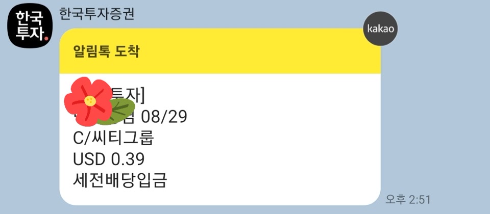 C/씨티그룹 배당금을 0.39달러 받았어요.