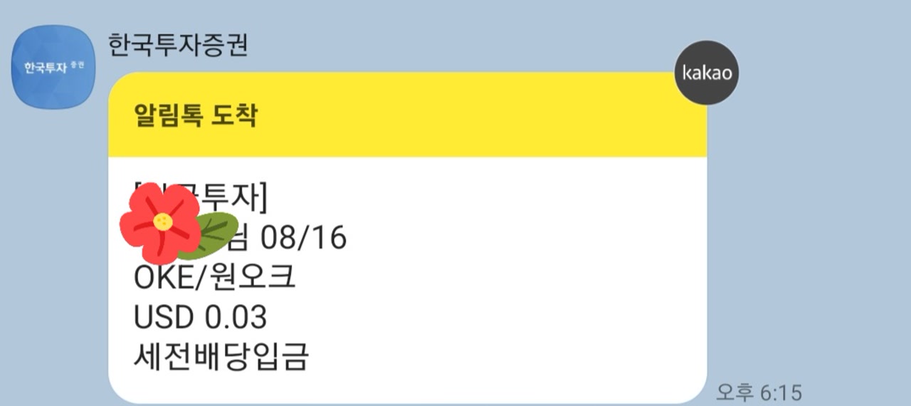OKE/원오크 배당금은 0.03달러를 받았어요.