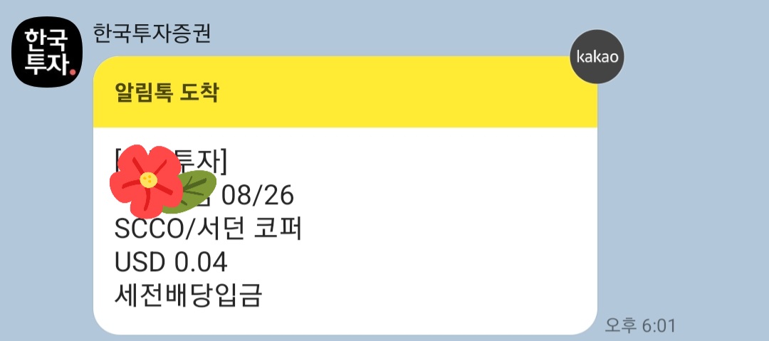 SCCO/서던 코퍼 배당으로 0.04달러를 받았어요.