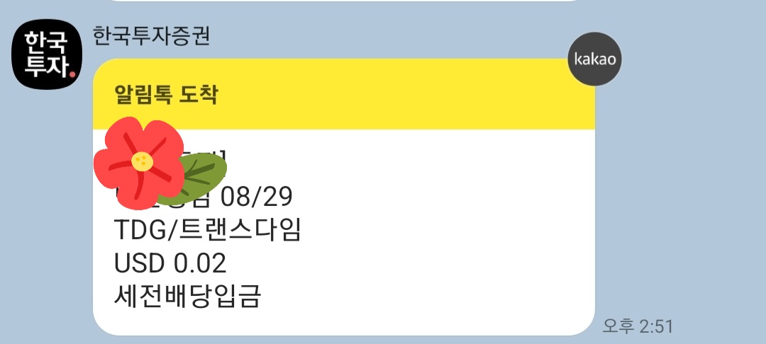 TDG/트랜스다임 배당금을 0.02달러 받았어요.