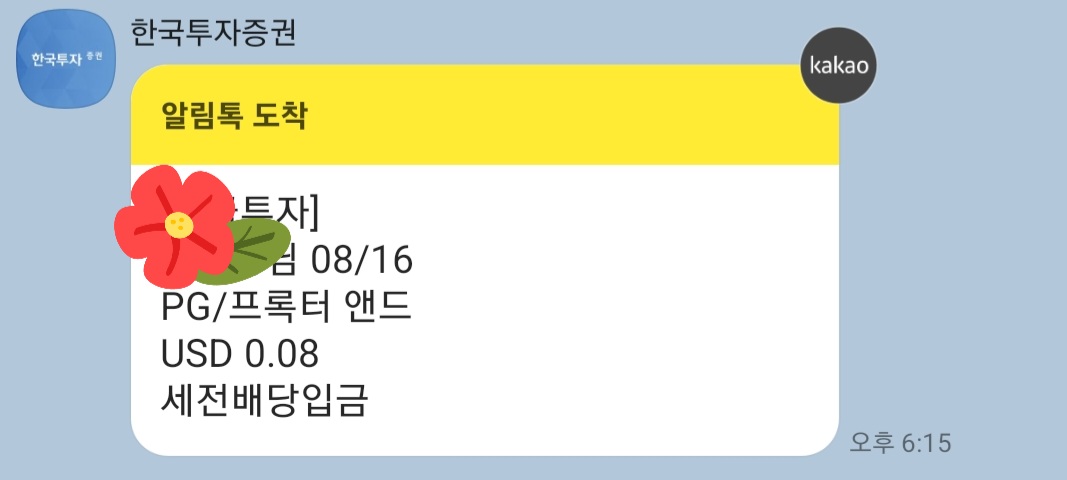 PG/프록터 앤드 배당금은 0.08달러를 받았어요.