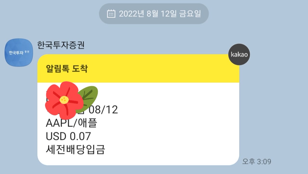 AAPL/애플 배당금은 0.07을 받았어요.