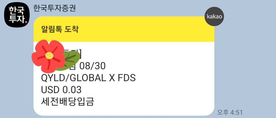 QYLD/GLOBAL X FDS 배당금을 0.03달러 받았어요.