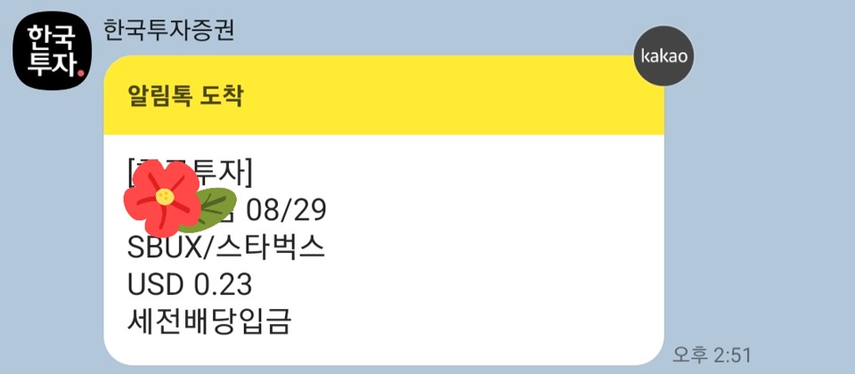 미니스탁으로 SBUX/스타벅스 배당으로 0.23달러를 받았어요.