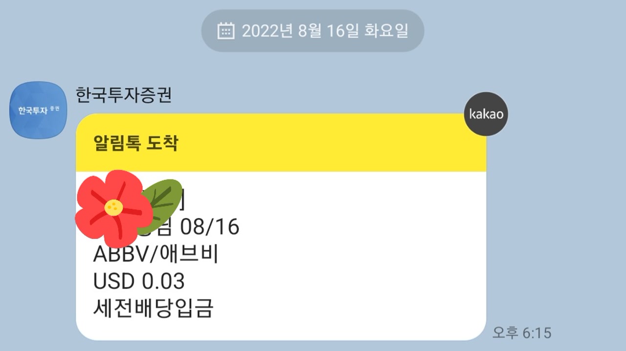 ABBV/애브비 배당금은 0.03달러를 받았어요.