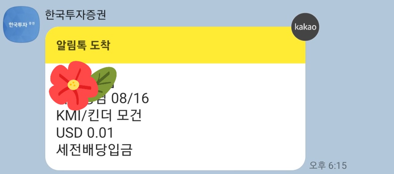 KMI/킨더 모건 배당금은 0.01달러를 받았어요.