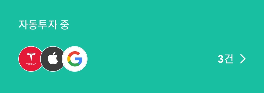 테슬라, 애플, 알파벳은 매주 일주일마다 천 원씩 자동투자 중이에요.