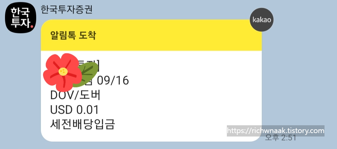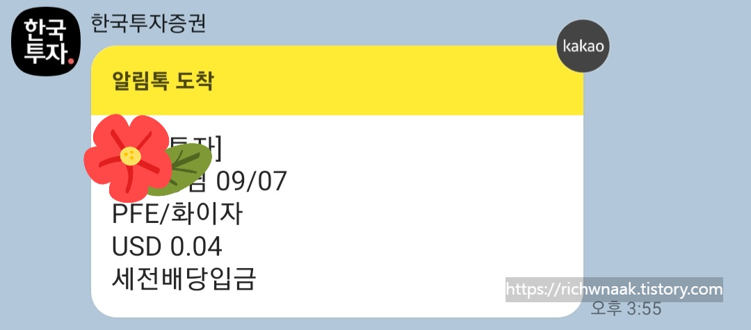 한국투자증권 PFE 화이자 배당금으로 0.04달러를 받았습니다.