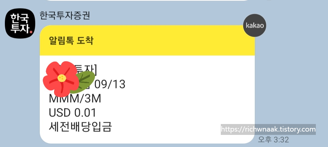 MMM 3M으로 0.01달러 배당을 받았습니다. 배당을 받기 위해 매수한 주식입니다.