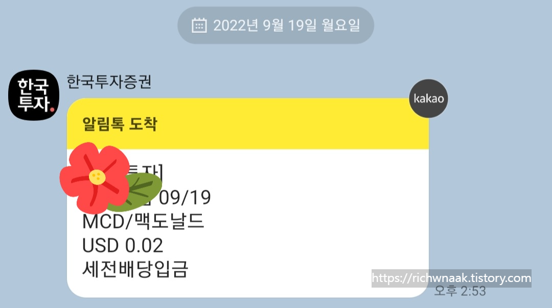 - 2022년 9월 미국주식 배당금: 2.08달러