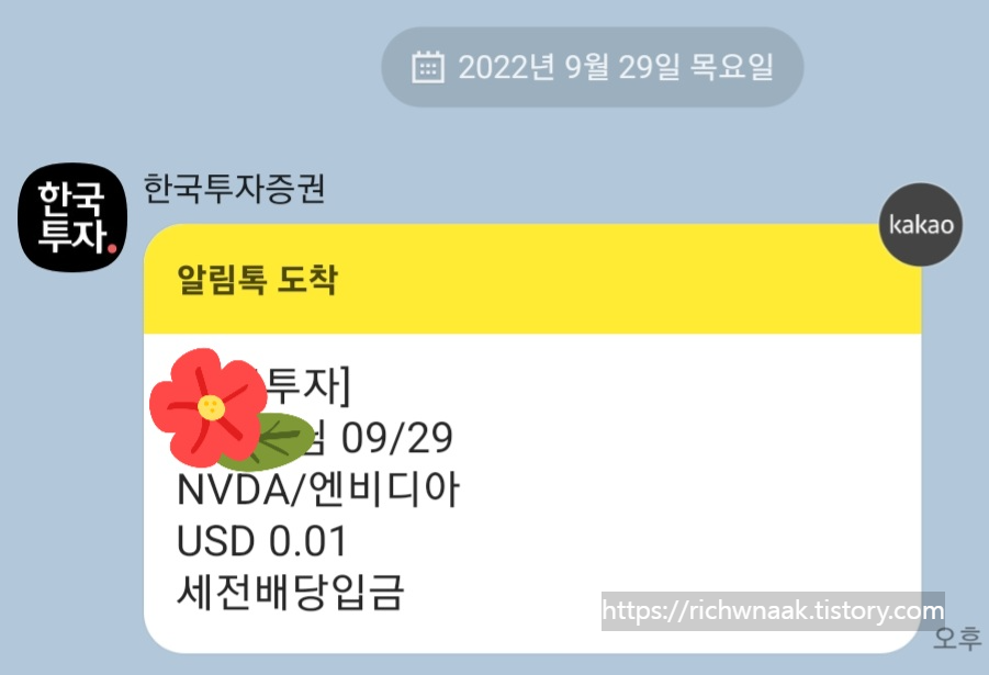 현재 미국주식이 파란불로 좋지 않지만 배당금을 받을 수 있어서 위안을 삼습니다.