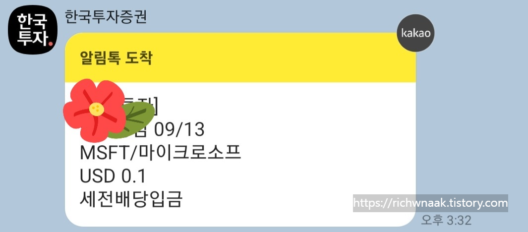 MSFT 마이크로소프트로 0.1달러 배당을 받았습니다.