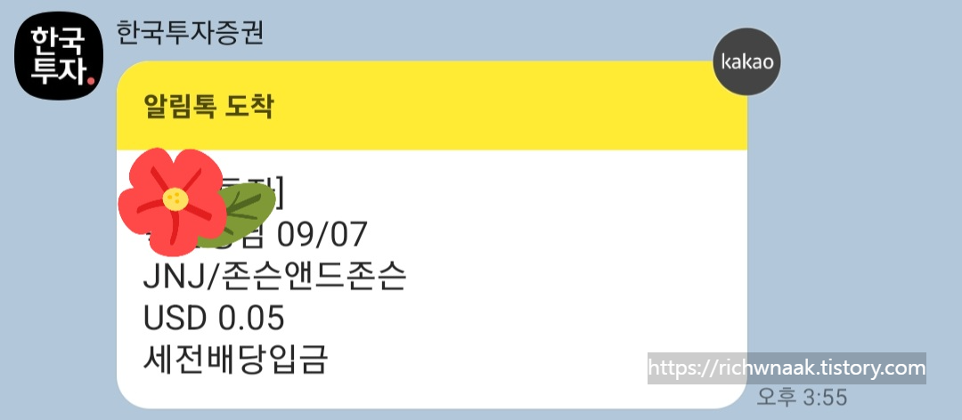 JNJ 존슨앤드존슨 배당금이 0.05달러 입금되었습니다.