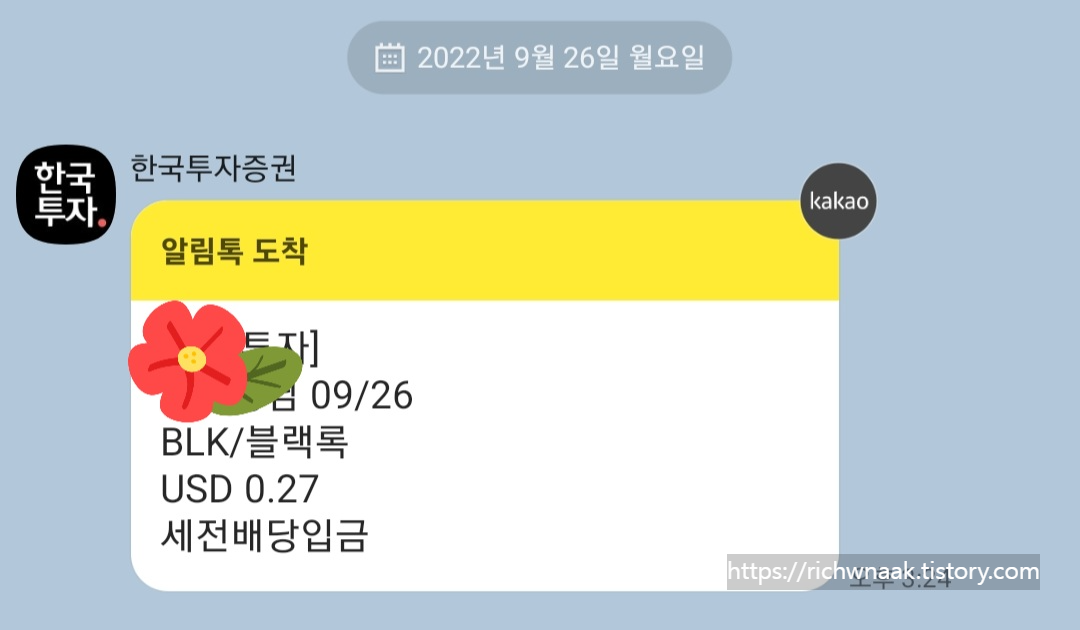 BLK 블랙록 배당금으로 0.27달러를 받았습니다.