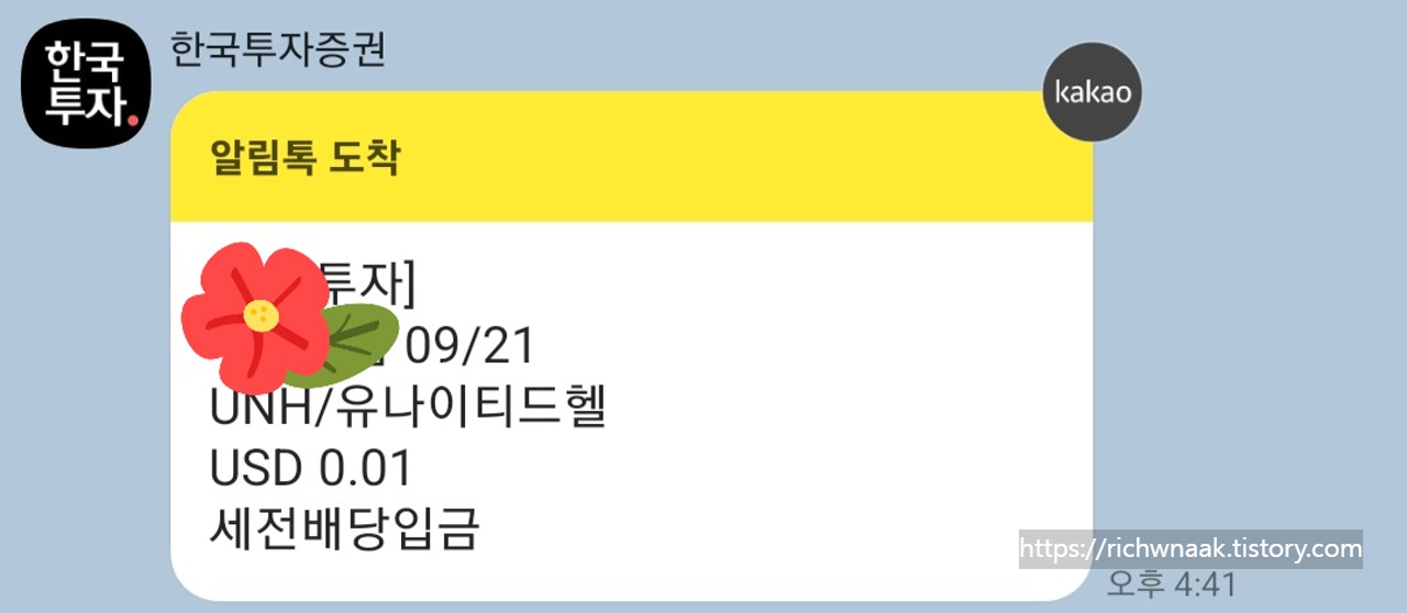 UNH 유나이티드헬스로 0.01달러 배당금을 받았습니다.