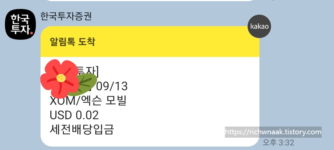XOM 엑슨모빌로 0.02달러 배당을 받았습니다.