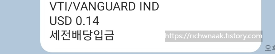 VTI/VANGUARDIND 배당금으로 0.14달러를 받았습니다.