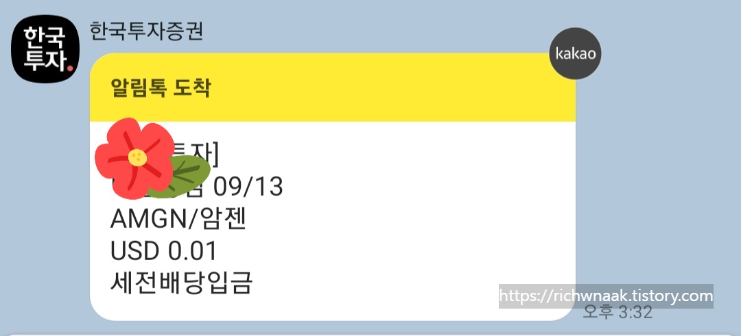AMGN 암젠으로 0.01달러 배당을 받았습니다.