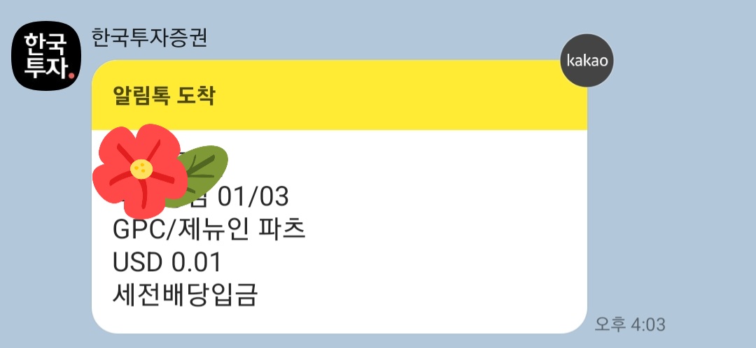 1월 GPC 제뉴인 파츠 배당금 0.01달러가 들어왔습니다.