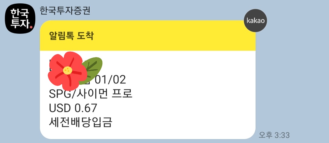 1월 SPG 사이먼 프로 배당금 0.67달러가 들어왔습니다.