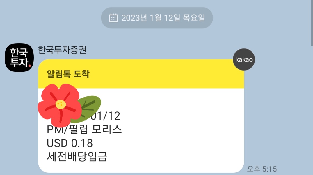 1월 PM 필립 모리스 배당금으로 0.18달러를 받았습니다.