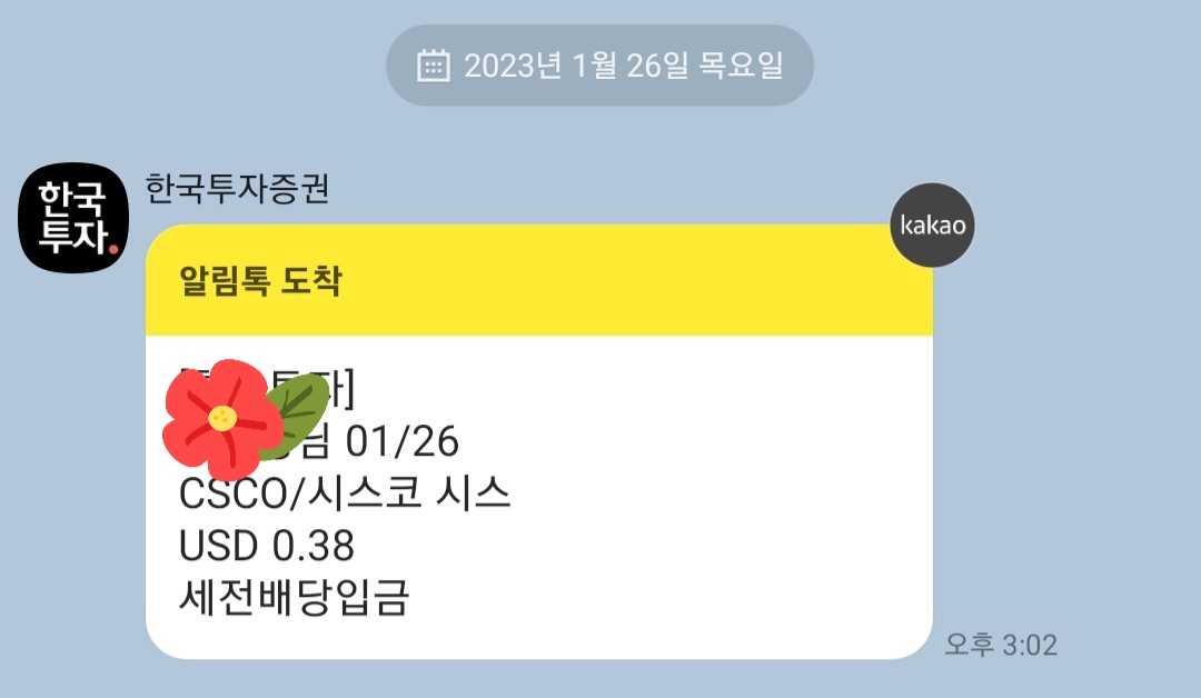 1월 CSCO 시스코 시스템 배당금으로 0.38달러를 받았습니다.
