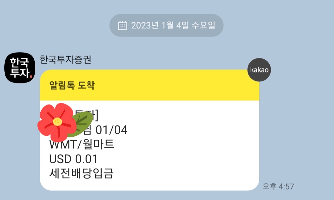 1월 WMT 월마트 배당금을 0.01달러 받았습니다. 지금은 작지만 나중에 주식이 차곡차곡 쌓이다보면 많아질 것이라 봅니다.