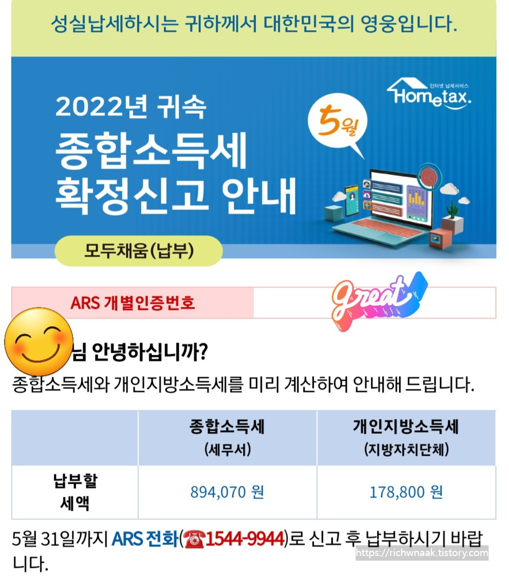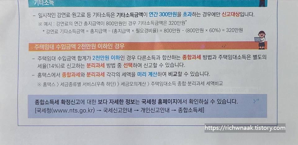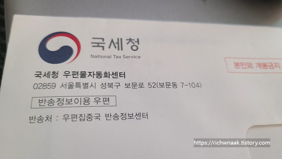 5월 종합소득세를 신고해야 해요. 홈택스로 해야지 하면서 조금은 미루고 있었어요. 그러다가 국세청에서 우편물이 왔어요. 당연하게 종합소득세를 내라는 안내장이라고 생각을 했어요. 5월이