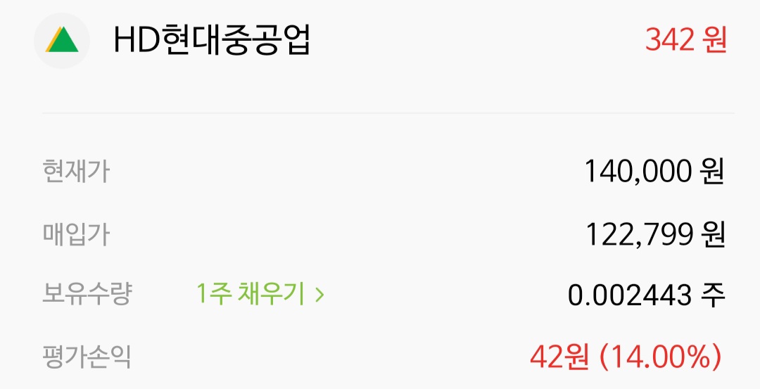 HD현대중공업 소수점 투자에서도 42원의 수익이 났습니다.