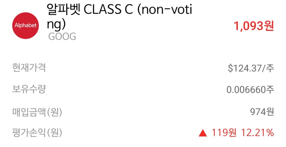2. 알파벳 CLASS C 소수점투자(나무증권) 수익