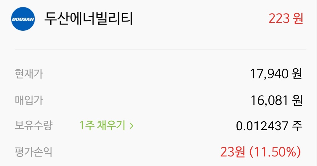 5. 두산에너빌리티 소수점투자 수익