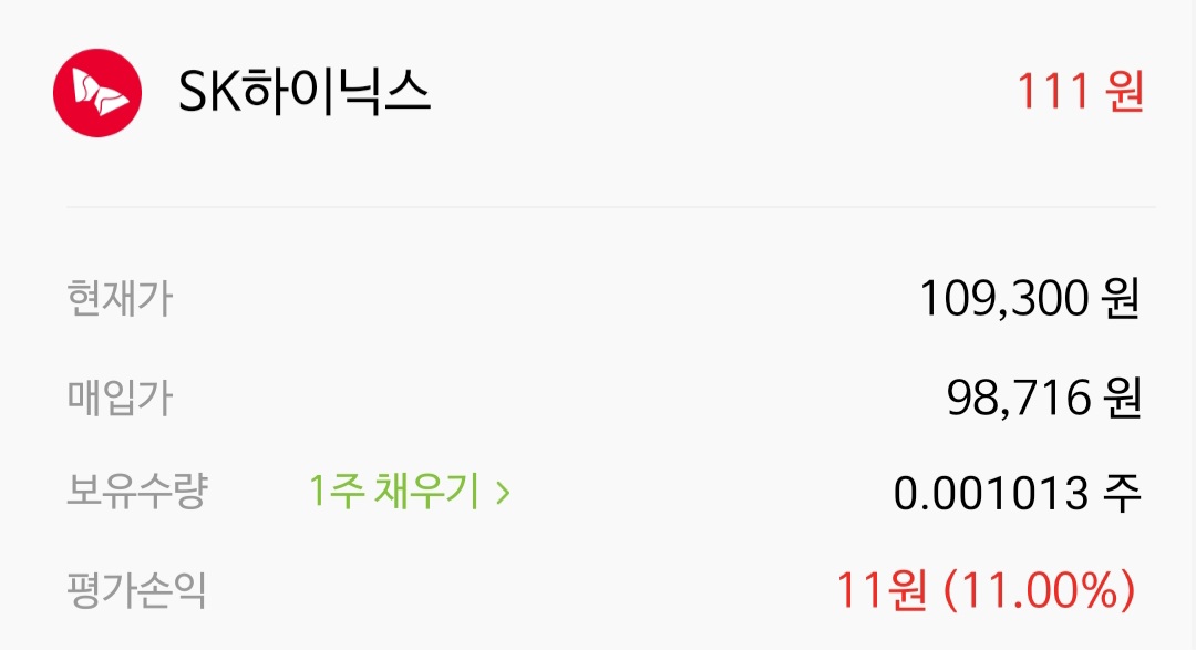 3. SK하이닉스 소수점투자(나무증권) 수익