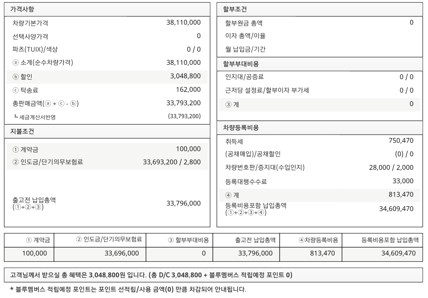 차값을 내는 방법은 일시불로 선택을 했어요.