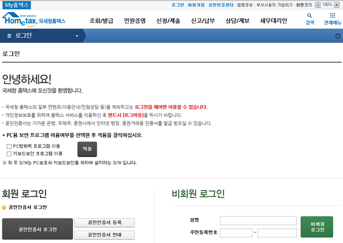 1. 홈택스에 로그인하기