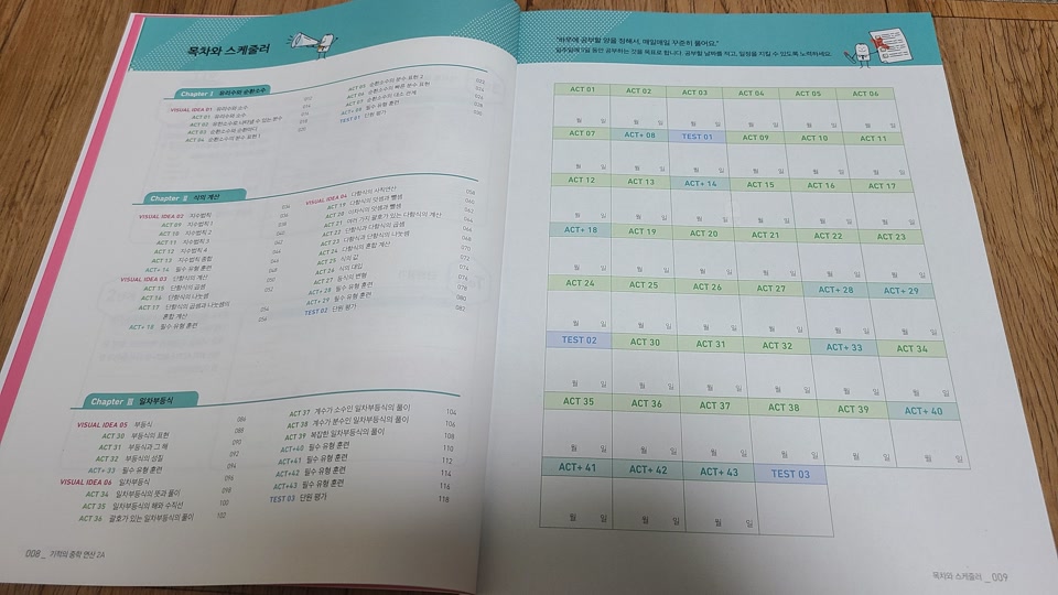 2단계는 손으로 익히는 ACT로 개념을 꼼꼼하게 읽은 후에 손에 익을 때까지 문제를 반복해서 푸는 것입니다.