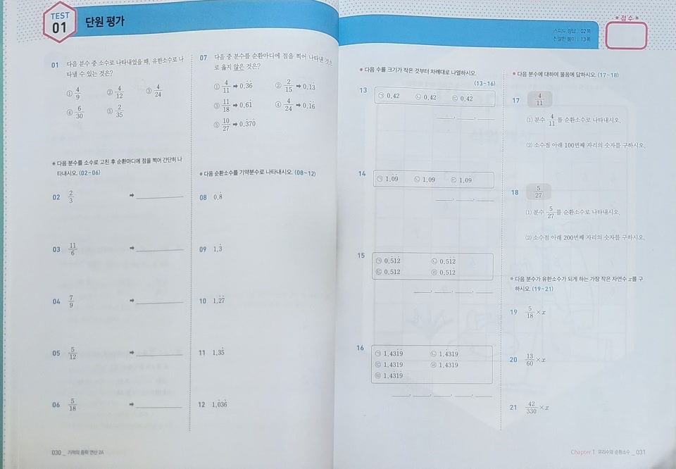마지막 단원평가를 풀며 기초연산의 실력을 쌓습니다.
