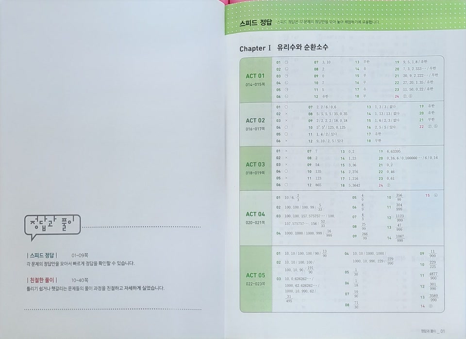 스피드 정답은 각 문제의 정답만을 모아서 빠르게 정답을 확인할 수 있습니다.