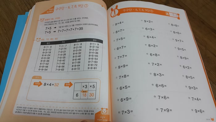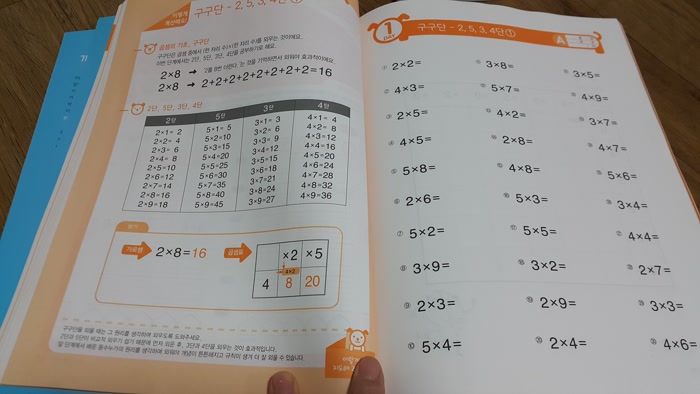 본격적인 구구단 외우기. 2학년 1학기가 끝나기 전에 구구단을 마스터하자.