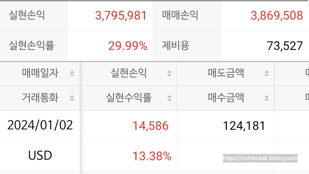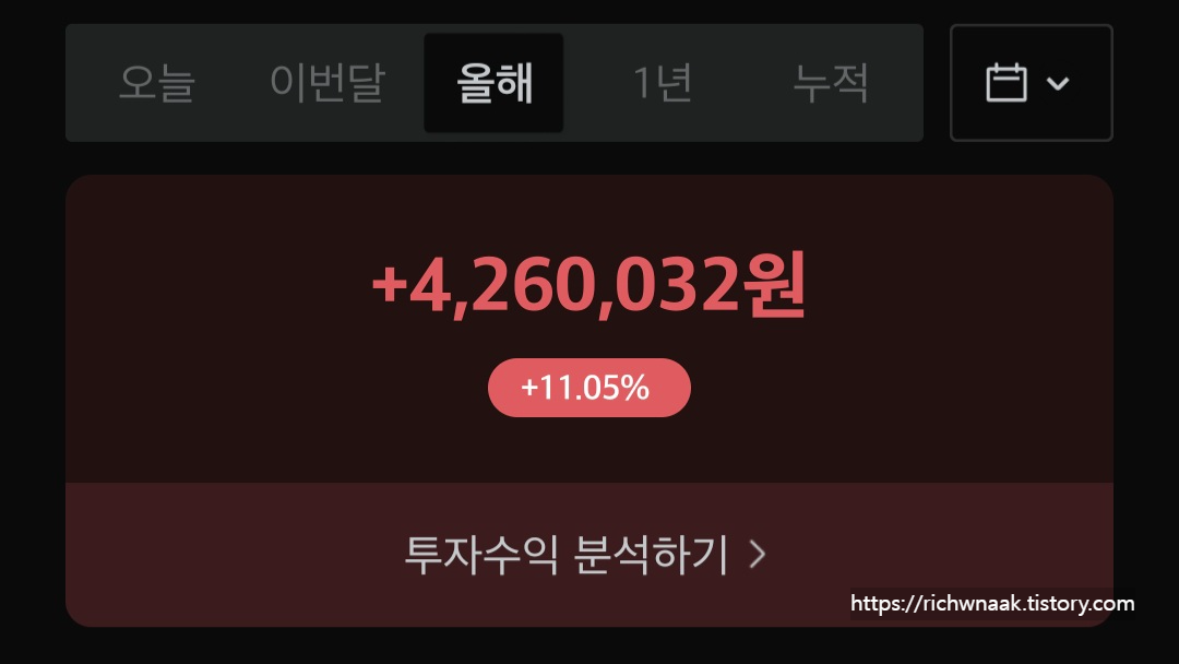 2025년에는 이보다 더 많은 수익이 나지 않을까 싶습니다. 매년 주식 수익으로 1억이 되는 순간까지 열심히 달려볼려고 합니다.